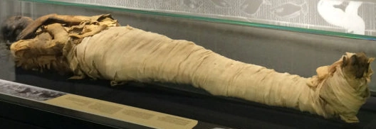Housed in the collection of The Garstang Museum, this mummy, dating to around 1,000 BC includes a gold heart scarab – an object inscribed with magical texts designed to prevent the heart from betraying the owner in the afterlife, the earliest known example ever found.