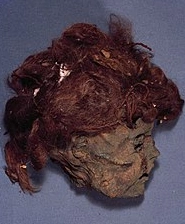 She was decapitated by a blow to the third and fourth vertebrae; the blow tore off part of the skin under the chin. Her hair is now a dark red, which comes from the chemicals in peat bogs, it was likely blond or brown in life. The hair was tied to a knot with a 75 cm long and about 5.3 cm wide woven hairband on the head. Due to the hairstyle, the head is presumed female.
