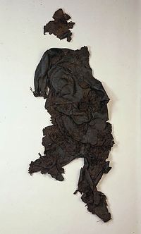 She wore a linen gown with a woolen cloak or shawl over it. The cloak was fastened with decorative pins. The woman wore a string of 130 small glass beads and another of 100 amber beads. She was buried with grave goods including a silver ring, an amulet made of beaver tooth, silver toilet articles, a bronze pin in the shape of a butterfly, thirty large glass beads, a bronze armband and two bronze keys.